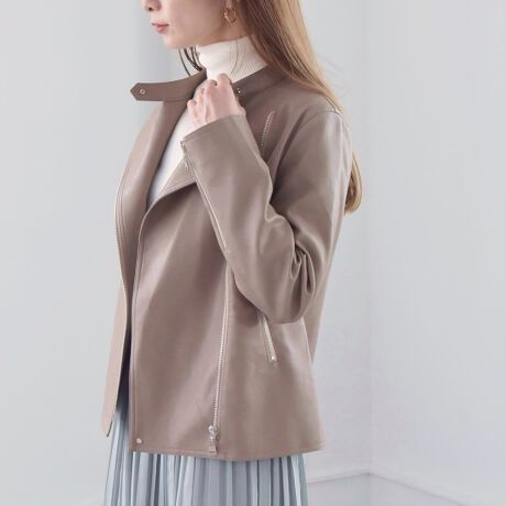 ハードなイメージを抑えたスタンドカラーで大人の女性にピッタリのジャケットです。