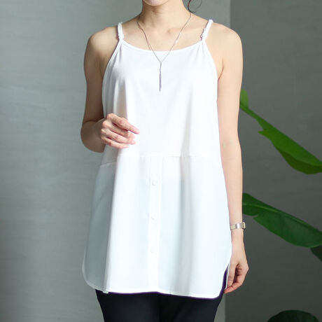 ロング丈&ラウンドヘムのレイヤードキャミソールの登場です。お手持ちのトップスの下に着るだけで旬顔になれる優れもの。ロング丈なので、気になるお腹やヒップ周りをしっかりカバーしてくれます。腰から下はシャツ風のデザインになっているのでオシャレ感たっぷり。シンプルでベーシックなカラーのレイヤードキャミは持っておくと重宝しますよ☆