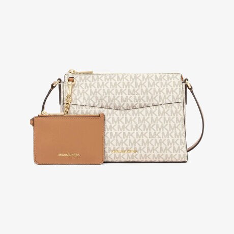 コンパクトなサイジングと気品漂うMKシグネチャーパターンがフェミニンな魅力を放つ KAYLEE(カイリー) 2 IN 1 クロスボディ スモール。インテリアには便利なドロップポケットを備え、お出かけの必需品をすっきりと収納。フロントのオープンポケットにチェーンリンクで繋がれた付属のポーチをしのばせれば、さりげないコントラストも楽しめます。