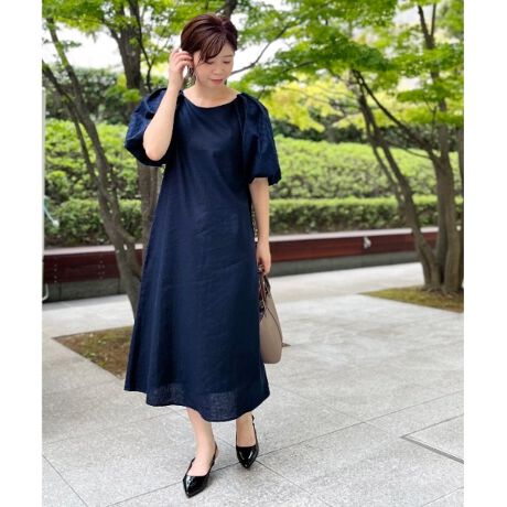 【1枚で着映える/洗える】リネン混 ボリューム袖ワンピース
