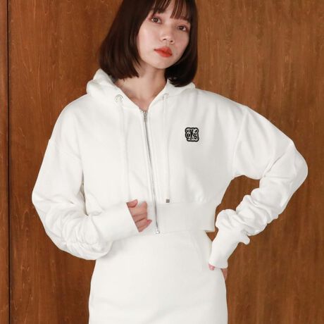 ロゴ刺繍ショートzipパーカー