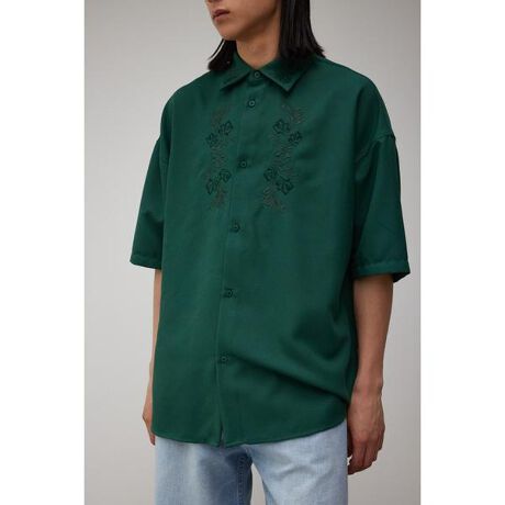 2023 Spring&Summer item ・生地の落ち感、肉感がしっかりしている素材で、綾目のつよいポリエステル素材です。・襟、胸にオリジナル刺繍をしています。・首元から胸元にかけて刺繍デザインが入っているシャツです。・トレンドの刺繍デザインシャツで、無地シャツよりも価値のある1着となっています。・サイズは2サイズで、ジャストでもゆったりでも着用していただく事が出来、気軽にトレンドスタイルを楽しめるアイテムです。