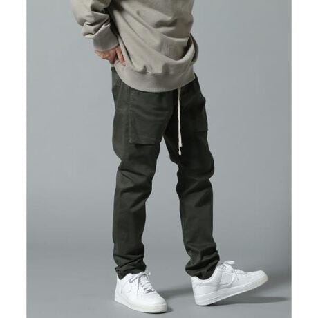 ウエストから太ももにかけてほどよくダボ付きをもたせ、膝下にかけてはスリムシルエットで仕立てることでスタイルアップ効果も期待できる一本です。
