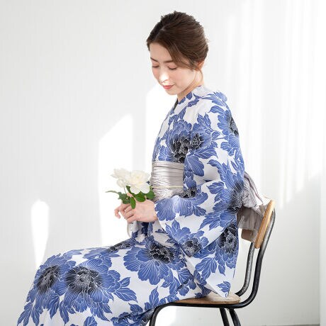 ※浴衣の柄部分は大きな生地を使用して作られておりますので、色や柄の出方、模様の配置等が画像と異なる場合がございます。