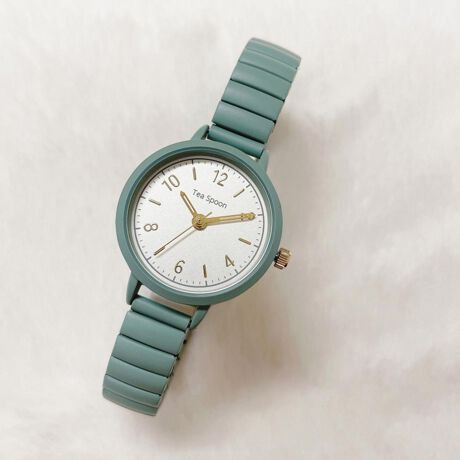 サッと着脱できる!日本製ムーブメントを使用した「Tea Spoon ジャバラウォッチ」が新登場。【ワンタッチ着脱】ゴムのように伸びる「ジャバラベルト」で、誰でも簡単に装着OK!バタバタしがちな出掛けの身支度もスムーズ。【日常生活防水タイプ】うれしい3気圧防水(日常生活防水)仕様。洗顔や雨で少し水がかかる程度なら大丈夫♪(※プールや海でのご使用は故障の原因となるため、お控えください。)【シンプルな文字盤】時刻を確認しやすい文字盤デザイン。文字盤ケース横のつまみで、簡単に時刻調節が可能。【シンプルなコーデに】アクセサリー感覚で身につけられて、コーデのアクセントにも☆【可愛らしいカラーバリエーション】淡めのニュアンスカラーをラインナップ。落ち着きのあるマットな質感で女性らしい印象を演出し、オン・オフ問わず活躍♪