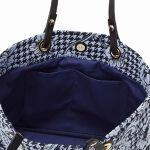 千鳥格子×花柄や建物をモチーフにしたキャッチーなデザインを、ジャガード素材とレザーで上品な雰囲気に仕上げました。