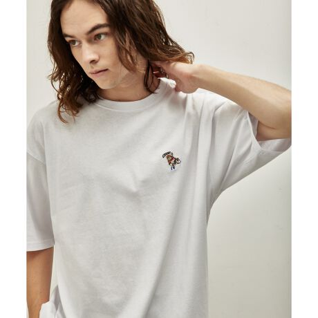 ワンポイントですが、刺繍のデザインがカジュアルなのでイージーパンツなどのリラックス感のあるパンツやショートパンツなど少しラフなコーディネートにもオススメです。