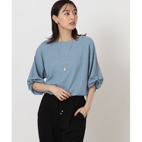 【腕周りカバー洗濯機洗い可】ポコポコジャージ袖タックプルオーバー