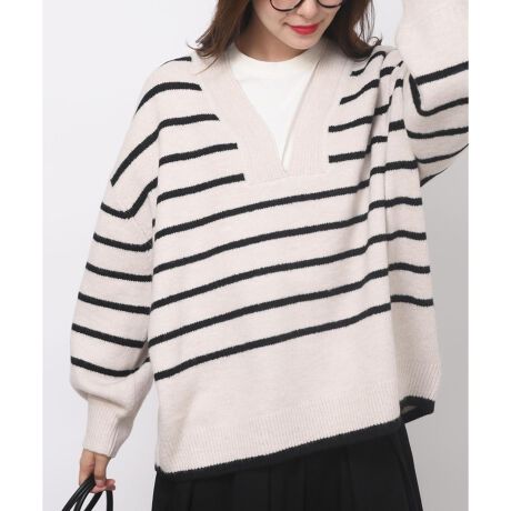 ボーダーVネックニットチュニック