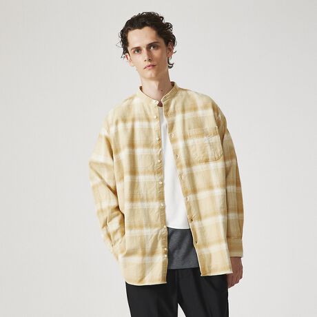 レディスアイテムで採用されたパターンをベースにメンズライクな仕様にアレンジ。Aライン気味のややオーバーサイジングなシルエットでタックアウトで着てもサマになり、軽いアウターとしても重宝します。程よくアクセントが効くカラーリングは、柔らかい印象のチエック柄と、クーリンな雰囲気のストライプ柄の2色。