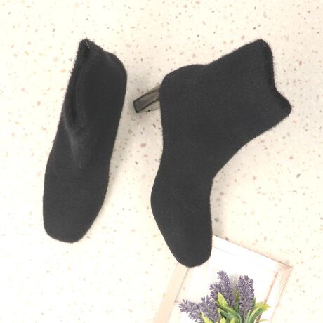 アウトレット◆7cmヒール◆起毛ストレッチ生地ショートブーツ