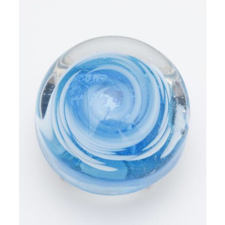 昔懐かしいおはじきをモチーフにした、まあるい大粒なガラス製。渦巻きのような模様が印象的。
