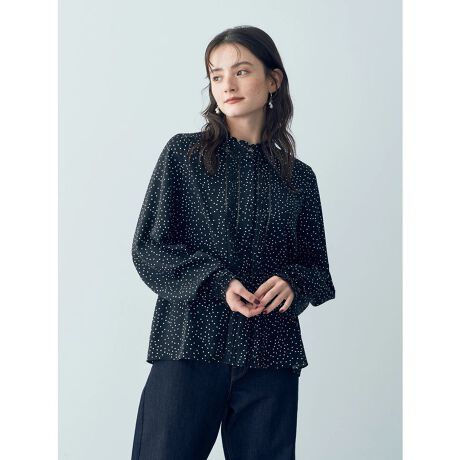 さらりとした落ち感のある素材で、着心地も快適。袖口のゴム仕様がフィット感をプラスします。
