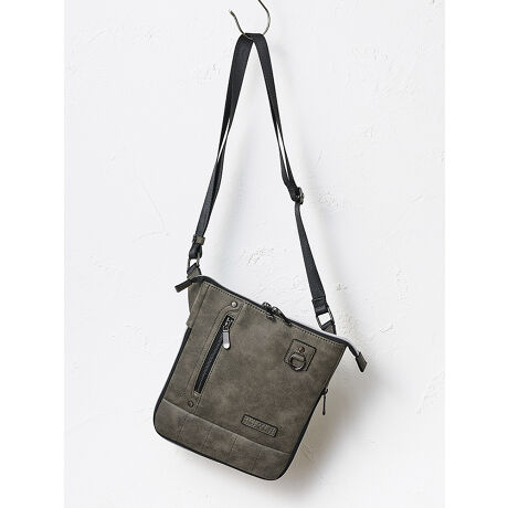 [型番:7203901]マットなフェイクレザーを使用した、高級感のあるミニショルダー。ステッチ使いがデザインアクセント。豊富なポケット / 容量調節のマチ / Dカン使いなど機能性も充分な製品です。