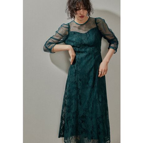 niana ニアナ 繊細なレースとシアーなチュール生地を切り替えたドレス。
