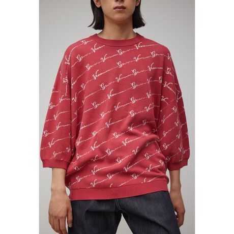 2023 Autumn&Winter item ・少し落ち感のある風合いの糸と、ストレッチ性のある糸を組み合わせてジャガードに編む事により、適度な張り感と落ち感が両立した編地に仕上げています。 ・端境期に嬉しい七分総柄ロゴニットです。 ・ロゴのGenerousとは優しい、Vivaciousとは快活という意味になっています。 ・シルエットは1サイズでゆったりシルエット。 ・デニムと合わせてカジュアルなコーデがおすすめです。