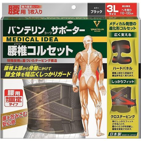 ウェルネス バンテリンコーワサポーター腰椎コルセット 3Lサイズ ブラック