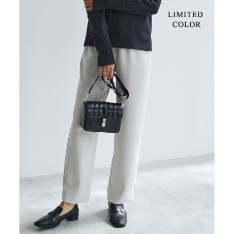 ■デザインサイドに別布サテン使いの側章ディテールを効かせたストレートパンツ。ウエストがゴム仕様で、ストレスフリーに履いて頂けます。また、ウエスト内側は別布サテン使いのドロスト仕様になっています。単品はもちろん、同シリーズのブラウスやベストとのセットアップ着用もおすすめです。