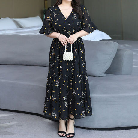 【大きいサイズ】 花柄ティアードシフォンワンピース 大きいサイズ レディース ワンピース 膝丈 花柄