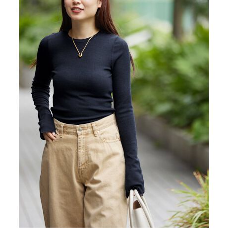 絶妙なフィット感で1枚着だけなく、ジャケットやシャツのインナーとしても活躍間違いなしのリブニット。