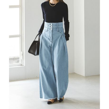 ハイウエストに持ち上げた大きめのウエストサイズ、すとんと落ちる美しいシルエットやリメイクしたようなベルトデザインなど、他にはないこだわりがたっぷり詰まった1枚。