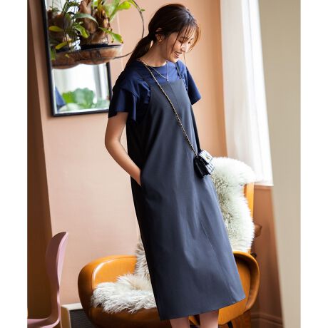 【洗える・シワになりにくい】リネン混オックスストレッチ キャミワンピース