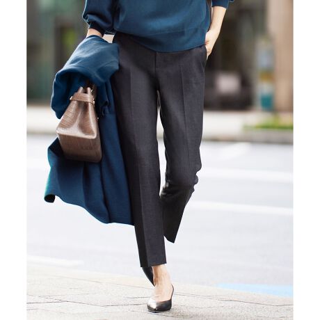 自由区定番人気のテーパードパンツ■デザイン自由区定番のウエストゴムのセンタープレス入りテーパードパンツです。着心地の良さと脚のラインが美しく見える程よいフィット感にこだわったシルエットに仕上げました。後ろゴムのギャザーを少し抑えることで、腰周りをよりすっきりと着て頂けるようにアップデートしております。カジュアルにもきれいめにも合わせやすく、デイリーに活躍します。ブラック系(005)はWEB限定カラーとなります。■素材履き心地の良いストレッチパンツで、適度なハリ感とキックバック性を非常に高いクオリティで表現したTR2WAYの尾州産地素材です。今までは実現しなかった、ソフトでしなやかな風合いになるローズ加工と、小雨程度の水をさっと払うことができる撥水加工の2つの加工を施しております。