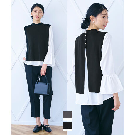 生地感:ブラウス さらりとした薄手生地/ベスト 伸縮性のある薄手のニット生地。
