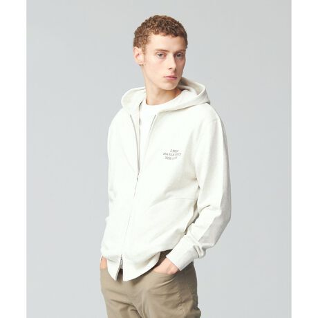 きれいめな大人パーカー■素材カットインレー素材を使用したロゴトレーナー。カレッジ物のトレーナーに使用する様な裏毛では無くインレー素材を使用する事により適度な厚み感とニットというよりも、より布帛生地に近いしっかり感がある素材に仕上がっています。また、肌触りにも優れていますのでカジュアル感を抑えて、高級感を演出します。■仕様ジップアップパーカー。カジュアル見えしすぎないシックなロゴを意識しました。発泡プリントという通常のプリントでは無い、立体感のあるプリントを左胸に入れています。サイズ感はレギュラーフィットですので、汎用性が高く着合わせ易くなっています。■コーディネートTシャツの上、あるいはカジュアルシャツの上から着用し、首元からシャツを覗かせるスタイリングもおすすめです。■デザイナーコメント素材は上品な雰囲気ですが、ロゴの表現にカレッジ物の雰囲気を感じられる一着です。