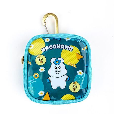 んぽちゃむ スクエアクリアポーチ (A) カラビナ付き ブルー 小物入れ