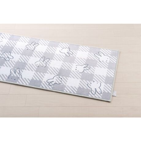 散りばめられた線画のミッフィーとギンガムチェックが可愛らしい、ロングマット(約45×180cm)