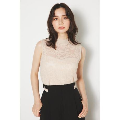 【センシュアルなデザインがレディ度を高めるノースリニットトップス】【Design】華奢な糸を使用し、まるでレースのような柄を立体感をだしながら編立ててデザインしたラグジュアリーなニットトップスです。トレンドである上品な艶感が女性らしさを更に引き立てます。身頃部分はシンプルに仕上げることでこだわりの柄デザインが際立つようにしました。パンツともスカートとも合わせやすく、スタイリング力も抜群です。夏にも着やすいさらっとした肌触りのニット素材を使用しています。【Color】清楚で華やかさのあるWHT、優しい色合いのBEG、爽やかさがありカジュアルにも着こなせるBLU、クールでシックなBLKの4色展開です。■透け感:あり■光沢感:ややあり■伸縮性:あり■裏地:なし
