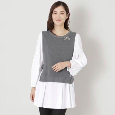 ボリュームのあるフレアがたっぷり入ったギャザー袖のデザインが可愛いシャツと、