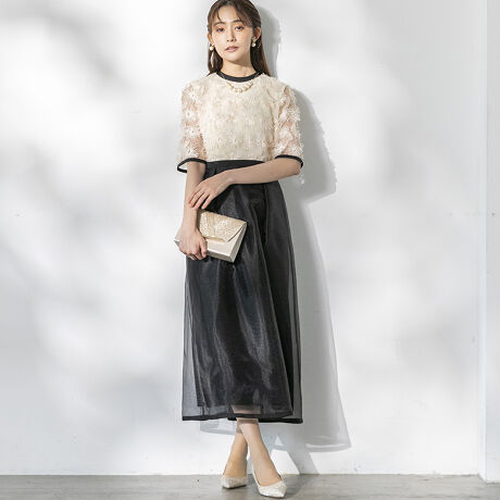 【kaene】3Dエンブロイダリー×オーガンジー ミックスドレス