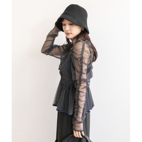 ラメの華やかさとチュールの透明感が女性らしさを格上げしてくれるブラウス