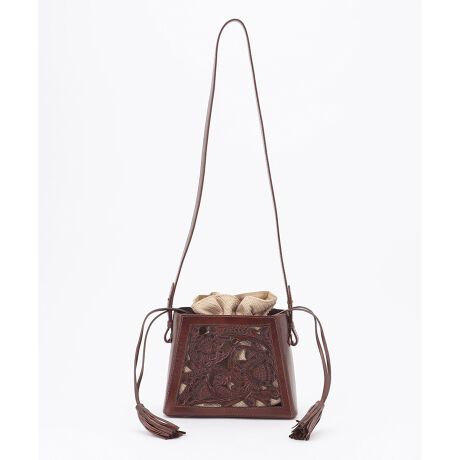 カットワークを施したショルダーバッグ。裏面はカットワーク無しで前後で印象が異なるデザインです。内側の巾着は取り外しもでき、マエストラや別のバッグに入れてポーチ代わりにお使いいただけます。