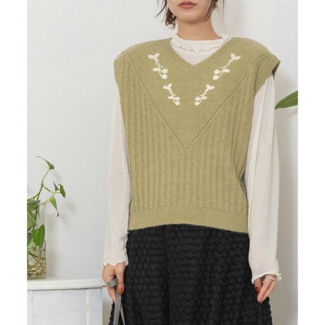 サガラベリー刺繍ニットベスト