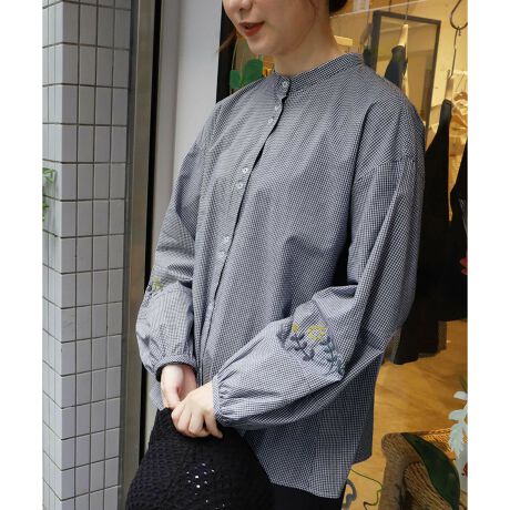 袖ボタニカル刺繍ランタンスリーブブラウス