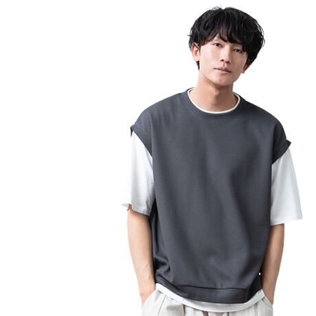 商品名:tシャツ メンズ 半袖 重ね着風 フェイクレイヤード ベスト 半袖tシャツ ゆったり おしゃれ 夏