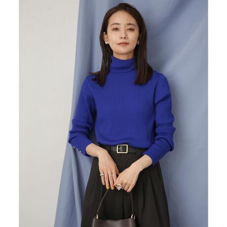 毛玉レスニットタートルネックリブプルオーバー