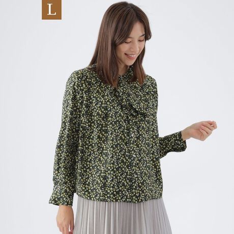 【L】【ウォッシャブル】フローレットプリントボウタイブラウス