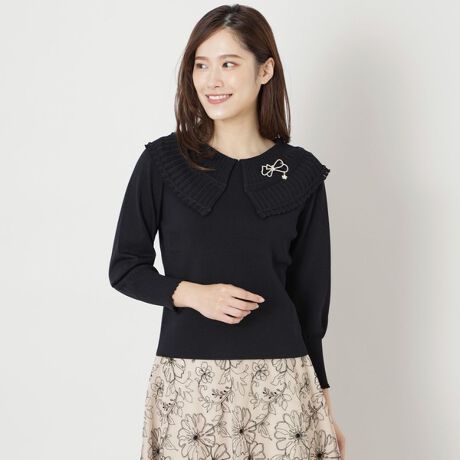 大人カジュアルに仕上げた透かし編みのケープカラーニットプルオーバーです。