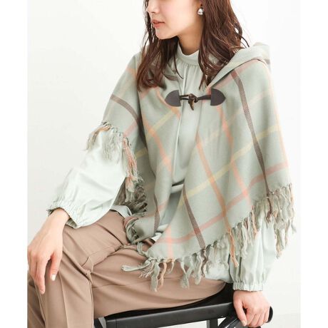 ボリュームのあるフリンジがオシャレなチェック柄ポンチョ。ストールをかけているように見えますが、羽織った時に綺麗に収まるようにネックにギャザーが入っており、トグル釦で留めることができる優れもの。起毛感のあるチェックがシンプルなコーディネートにも1枚羽織るだけでシーズンムードがたっぷりに仕上げてくれる1枚。