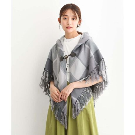 ボリュームのあるフリンジがオシャレなチェック柄ポンチョ。ストールをかけているように見えますが、羽織った時に綺麗に収まるようにネックにギャザーが入っており、トグル釦で留めることができる優れもの。起毛感のあるチェックがシンプルなコーディネートにも1枚羽織るだけでシーズンムードがたっぷりに仕上げてくれる1枚。