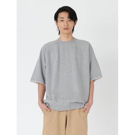 ラグランタイプのカットオフスウェットシャツ。ラグラン構造で通気性に優れたコットン100%のリラックスした着心地とクルーネックの襟、古着でもありそうな切りっぱなしの袖が特徴です。春先は長袖をインナーに重ね着やシャツを羽織る着こなしもオススメです。カジュアルに着こなせ、アウトドアシーンでも活躍する一着です。