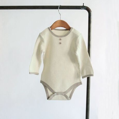【WEB限定/ベビー/綿100%やわらかワッフル】長袖ボディスーツ