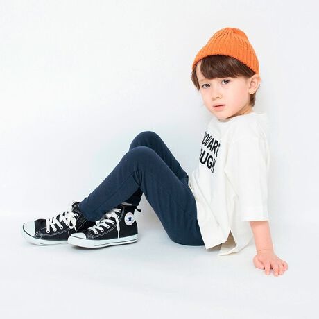 通園などで履きやすい9分丈のデザイン。