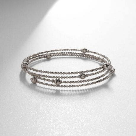 煌くカットボールのワイヤーにステーション状に配置したカットビーズがさらに華やかな存在感を放つバングル。