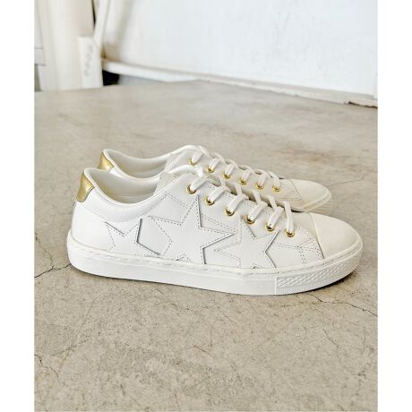 星をのせたシンプルなホワイトの中にGOLDが光り、個性がありながらも大人も楽しめる一足です。