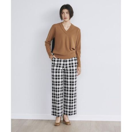 モノトーン配色のオリジナルチェックパンツは異素材使いの凹凸が秋の表情を演出。絶妙な太さのセミワイドをハイウエストが引き締め、裾まで伸びるセンタープレスが縦長スタイルをつくります。バックゴムウエストの程よいフィット感で穿き心地が良く自宅でケア出来るのも嬉しいポイント。ブラウスとのクリーンな着こなしやオーバーサイズのニットを合わせたカジュアルなスタイリングもおすすめです。・裏地あり・ウエスト後ろ部分ゴム仕様・左サイドファスナーあり・水洗い可■サンプル撮影商品■こちらの商品はサンプルでの撮影となっております。実際の商品とは、サイズや色味、素材、デザイン等の仕様が若干変更になる場合がございます。